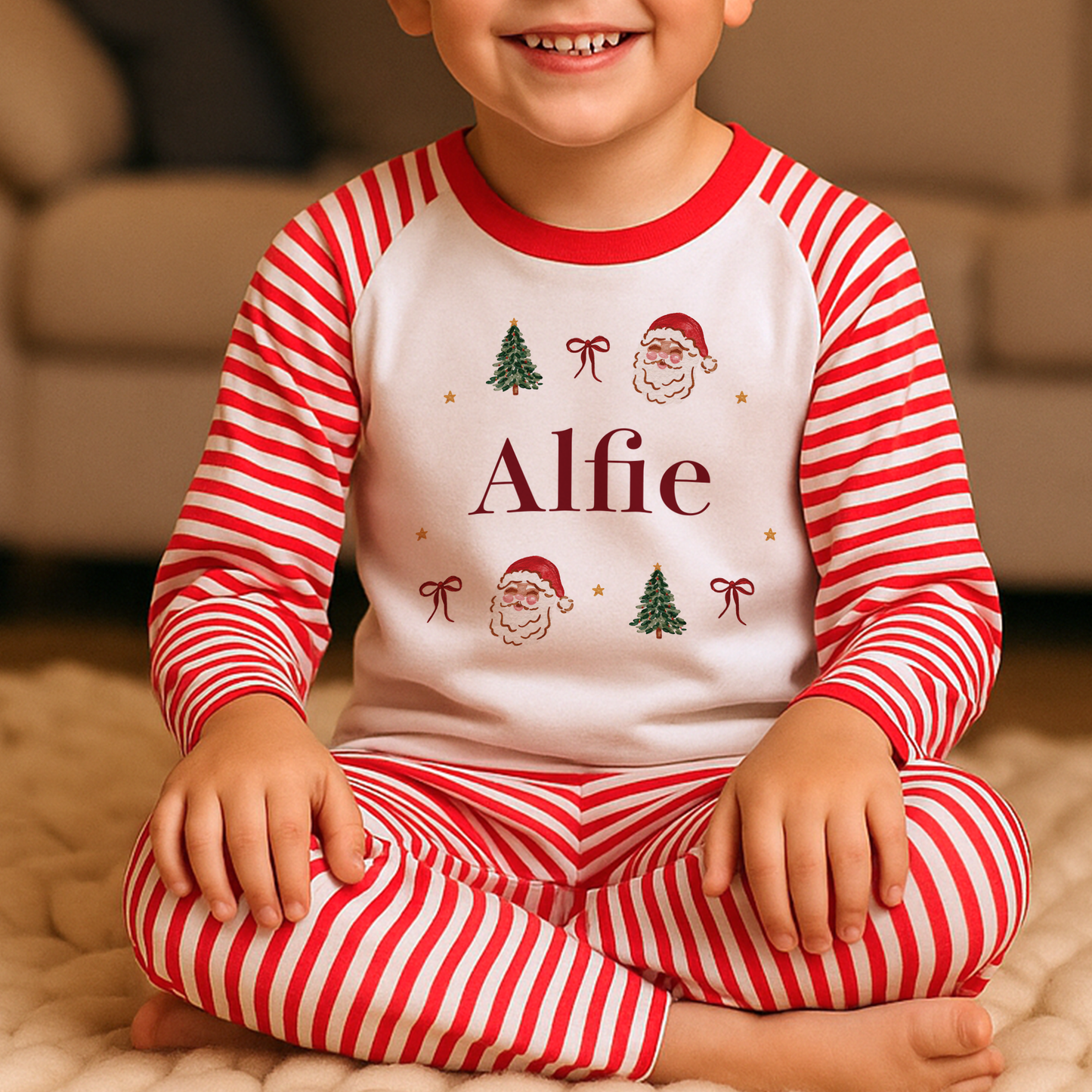 These stunning personalised matching christmas pyjamas are the perfect gift on Christmas eve! They can be personalised with any name & feature our best selling VINTAGE Santa design.