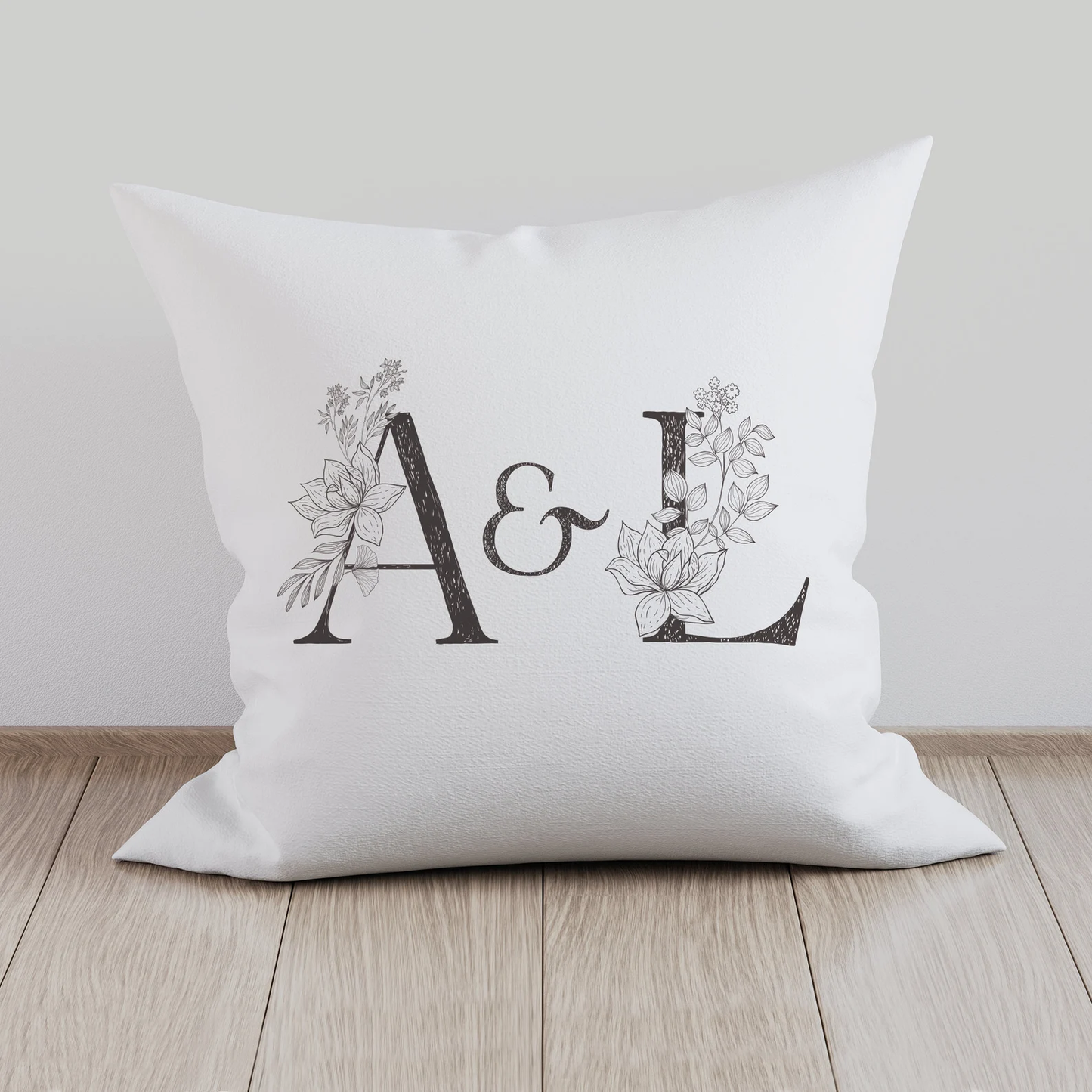 This beautiful personalised initial cushion is a great gift Valentines Day or an Anniversary present. It features stunning linear floral initials, giving a minimal yet personal appearance. This is a great wedding present too!