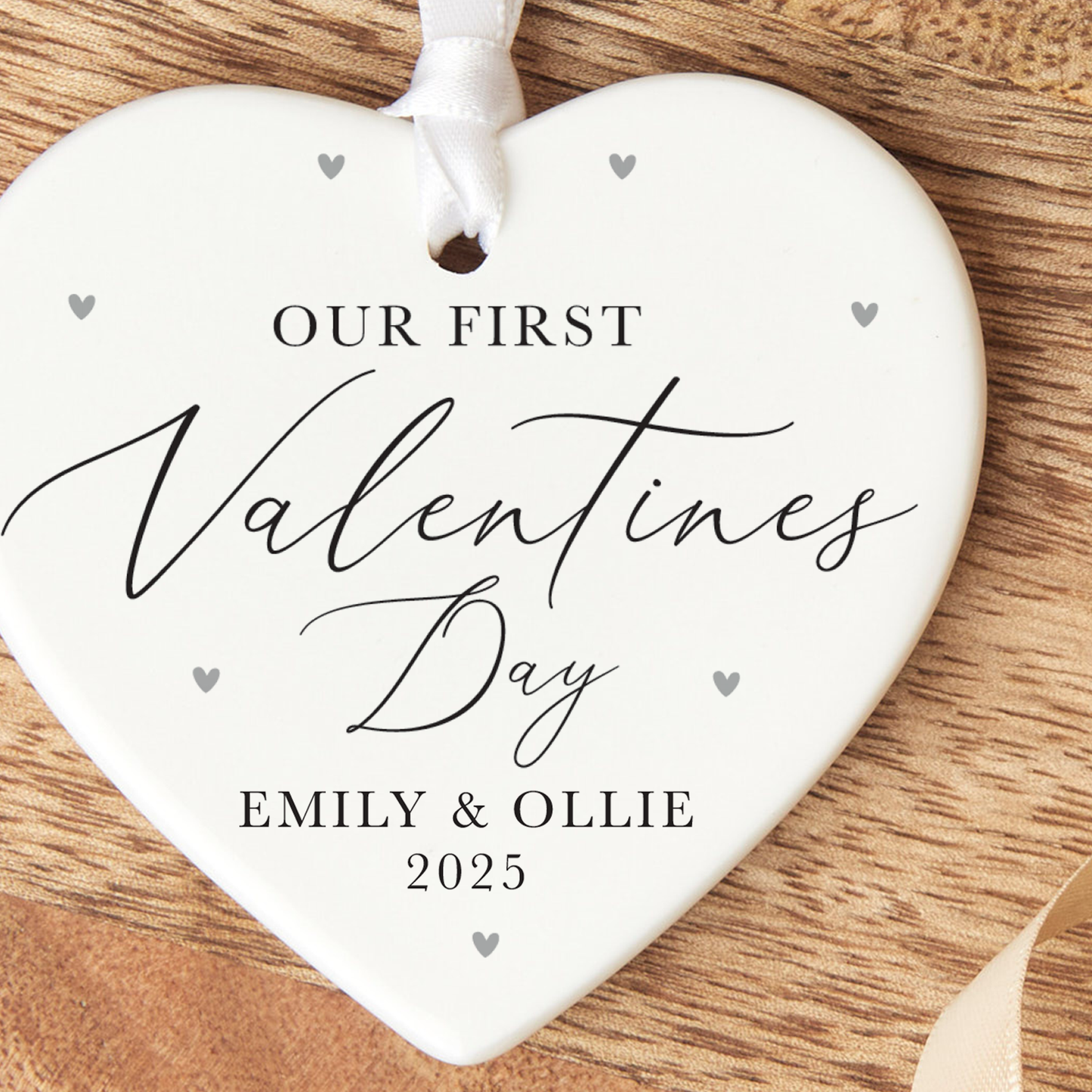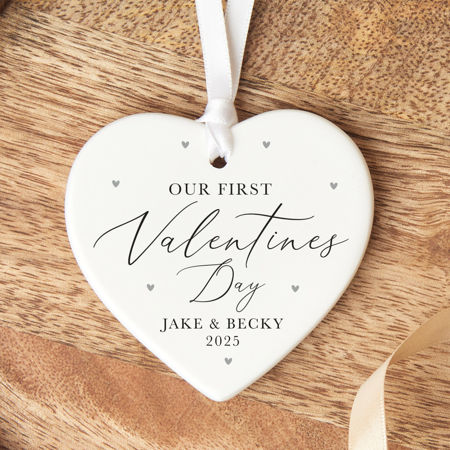 This stunning First Valentine's Day ornament is the perfect keepsake gift this Valentine's Day. It can be personalised with any names & date to make it extra special. This is great for a first valentines day together gift
