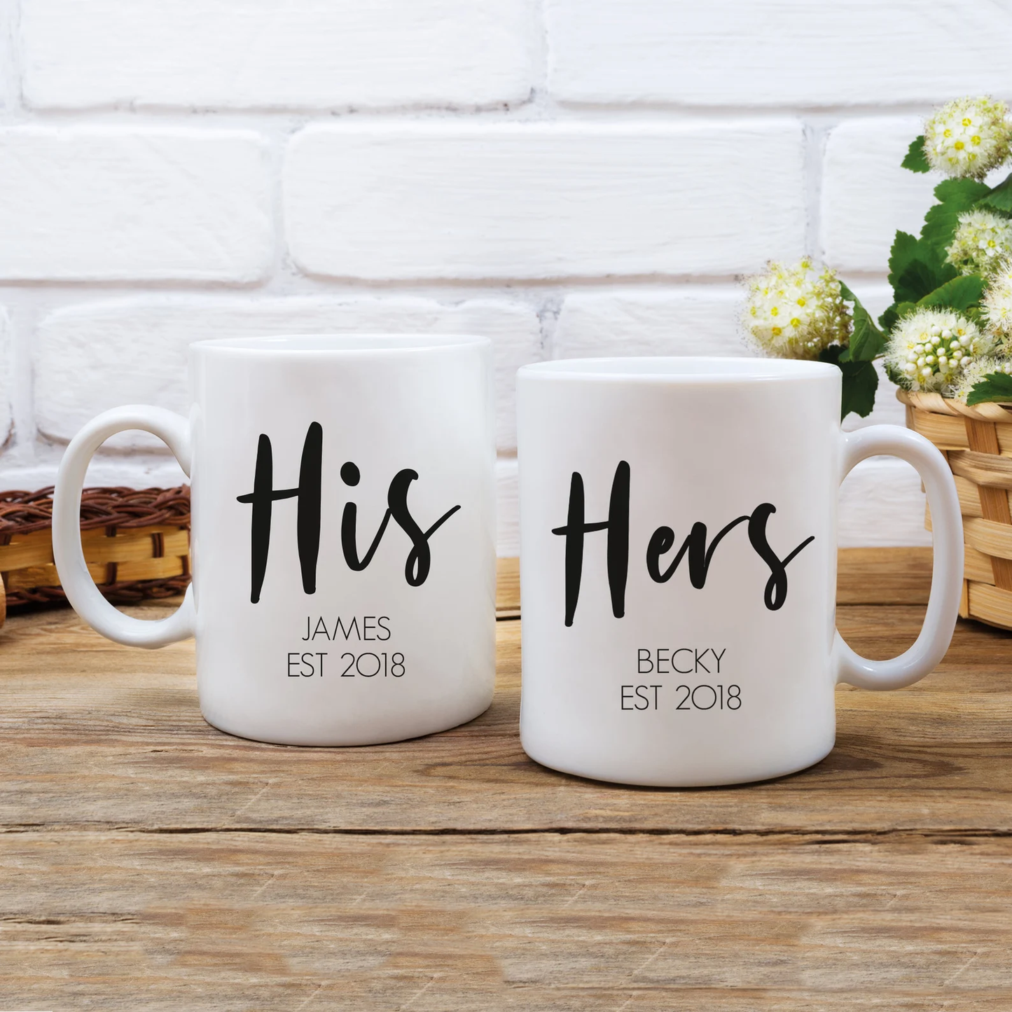 These beautiful his and hers mugs are the perfect gift for Valentine's Day, an anniversary or just a gift for your girlfriend or boyfriend. They can be personalised with a name & year to make them extra special. A great valentine mug set.