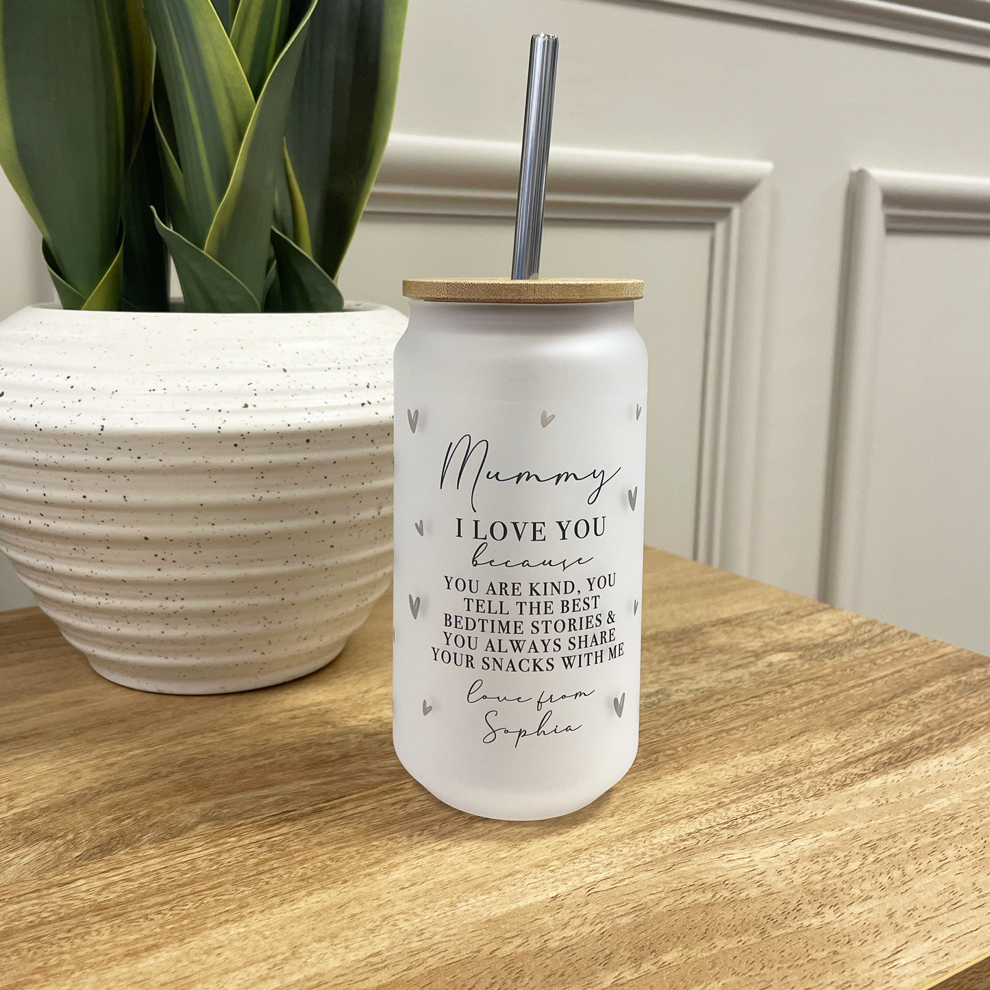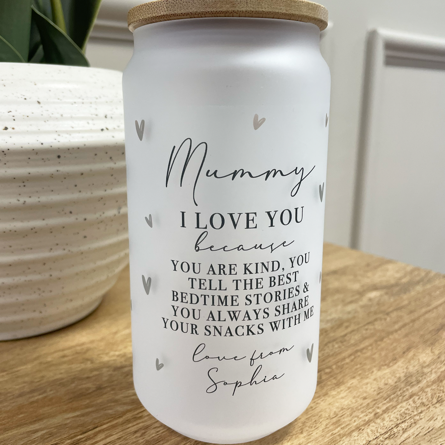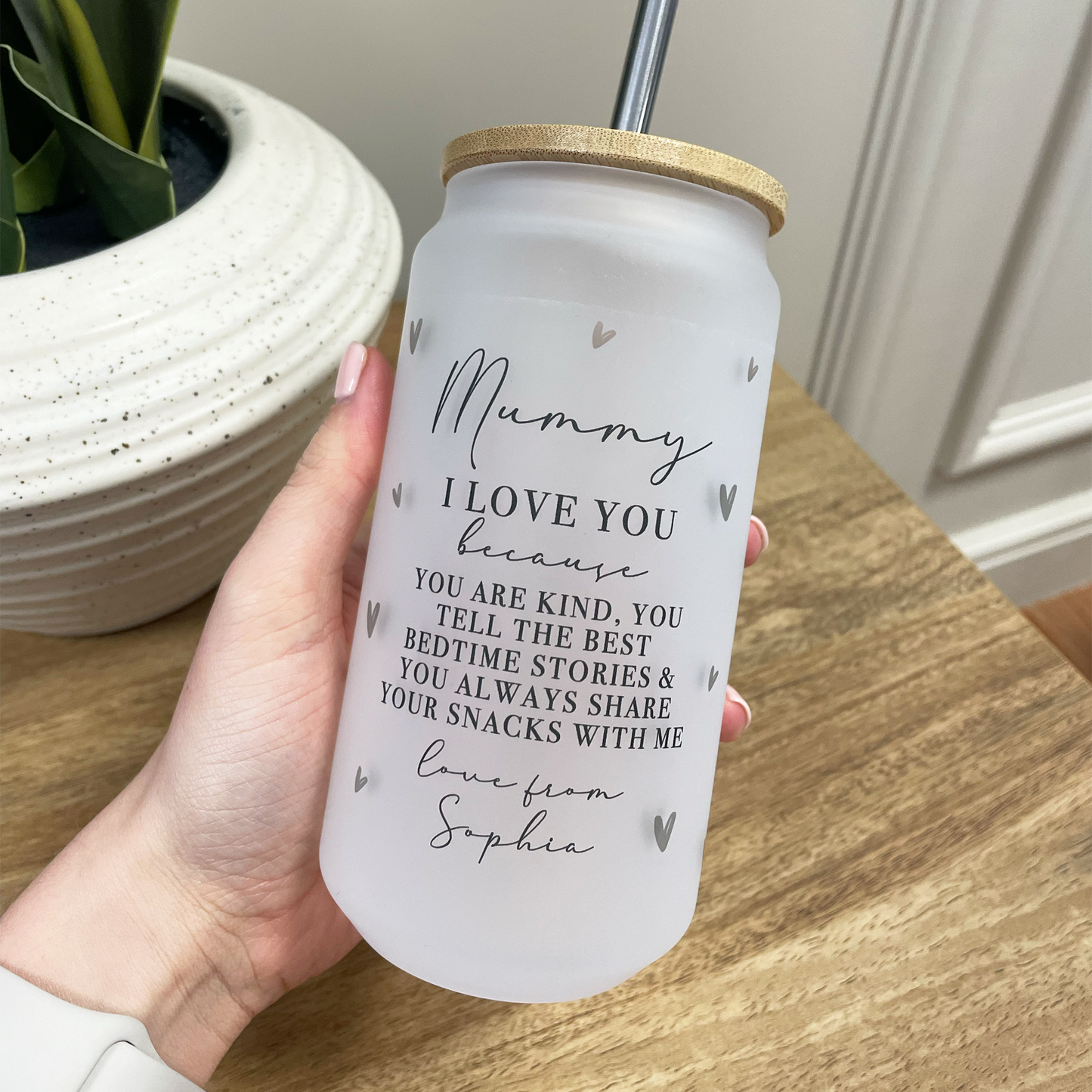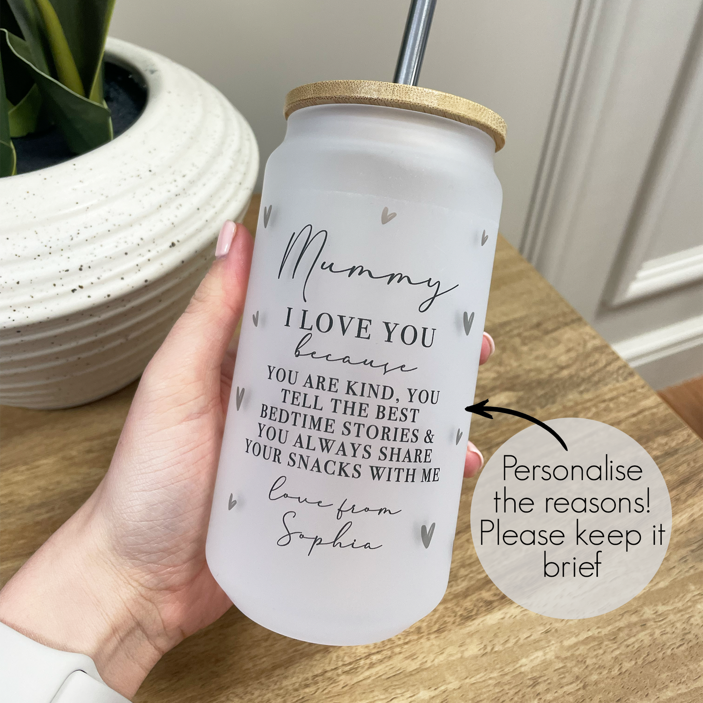 Regular price £12.19This stunning personalised Mother's Day 'Reasons Why I Love You' glass coffee cup is perfect for any Mum, Nan, Grandma or someone special. It can be personalised with any name, reasons & who it is from to make it extra special.