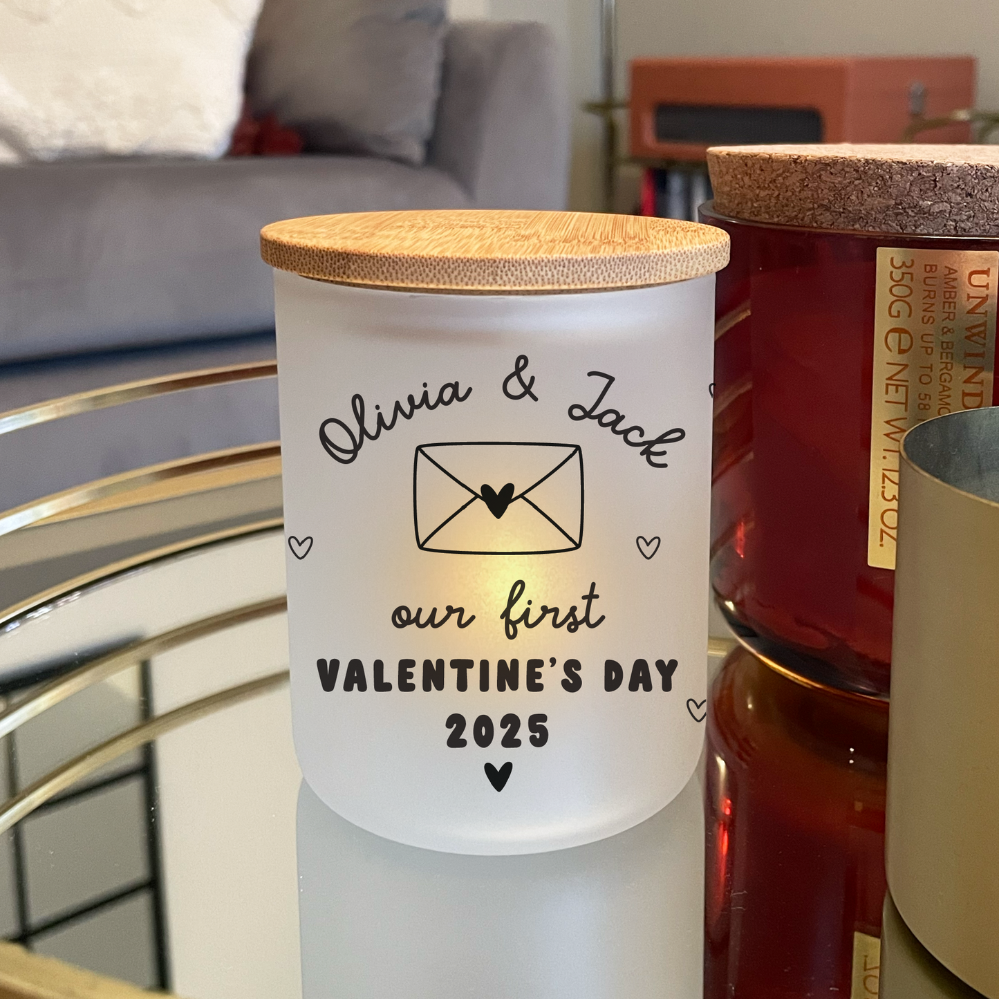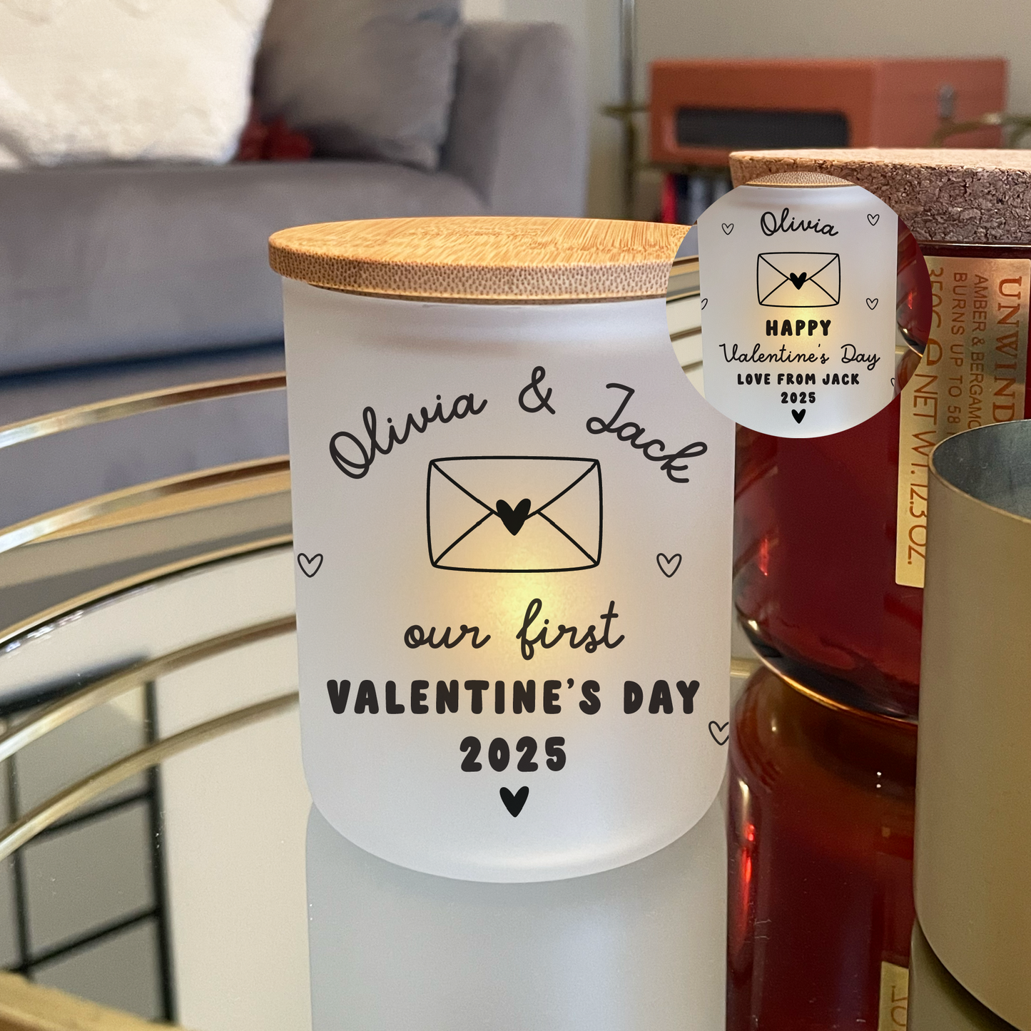 This beautiful Valentines Day candle is perfect for your boyfriend or girlfriend this Valentine's Day. It can be personalised for a First Valentines day, or for any valentines day gift. Personalise it with any names & year to make it extra special.