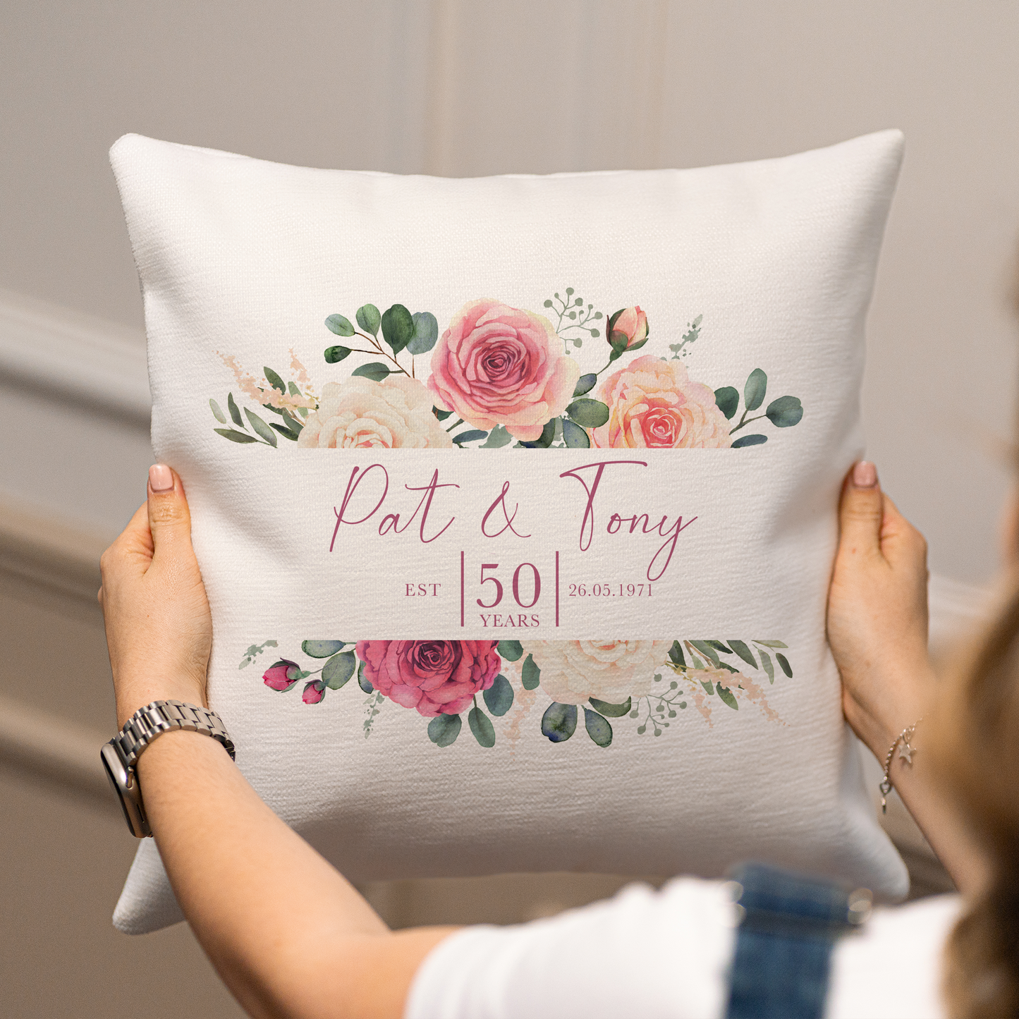 This beautiful personalised anniversary cushion is the perfect addition to any bedroom or living room. It is great for any anniversary and can be customised with a name, date & anniversary number.